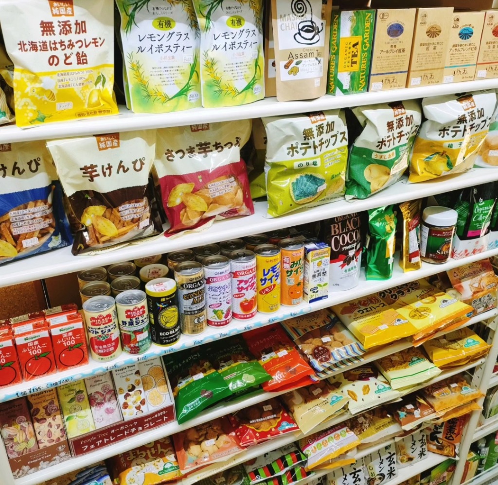 無添加や国産材料にこだわった、調味料、加工食品、お菓子から自然派雑貨、そしてバイオエイドスキンケア製品まで、小さなお店に詰め込んでいます。