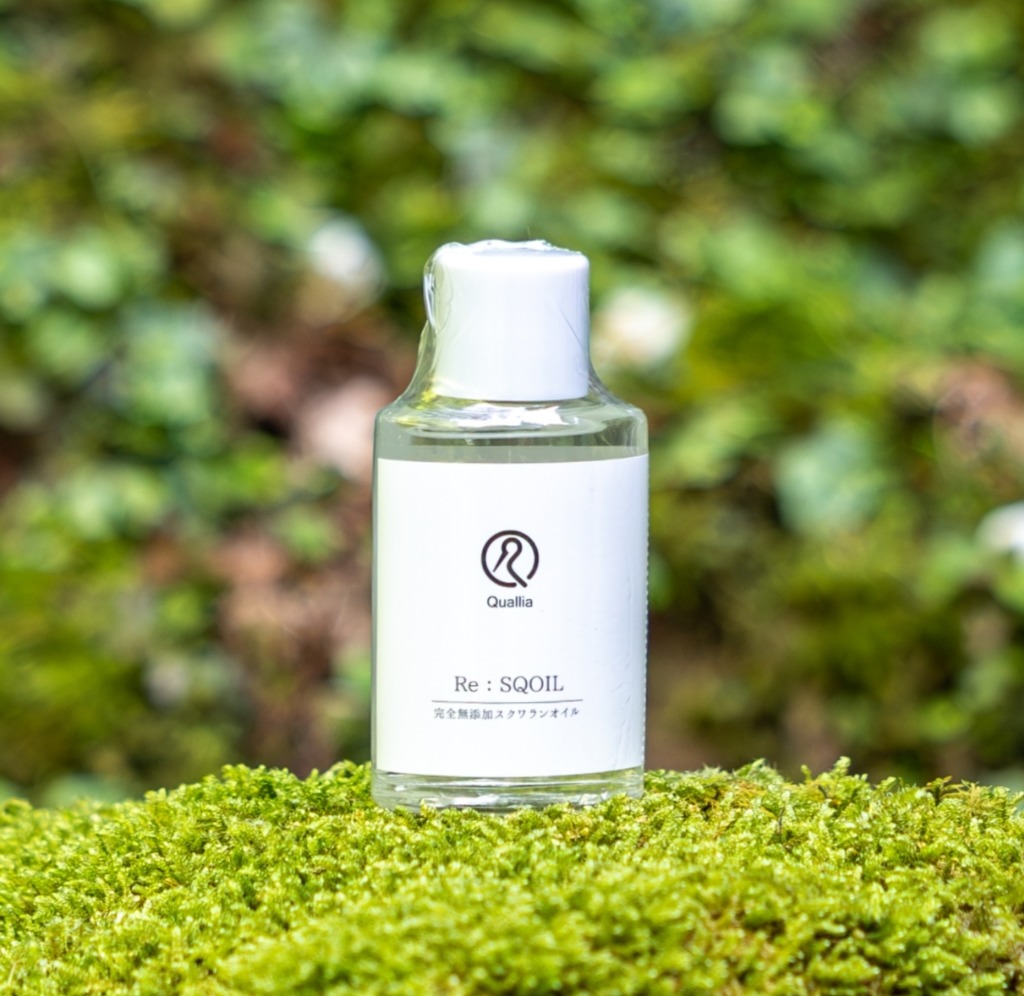 私が選んだのは、深海にすむアイザメの肝油から精製されるスクワレン。これに水素を添加して安定度を高めたのが「スクワランオイル」となります。高純度で完全無添加、とても貴重で良質なオイルです。ベタつきが少なくサラッとしていて使用感が良いのが特徴で、人間の皮脂に近い働きでお肌を守ります。